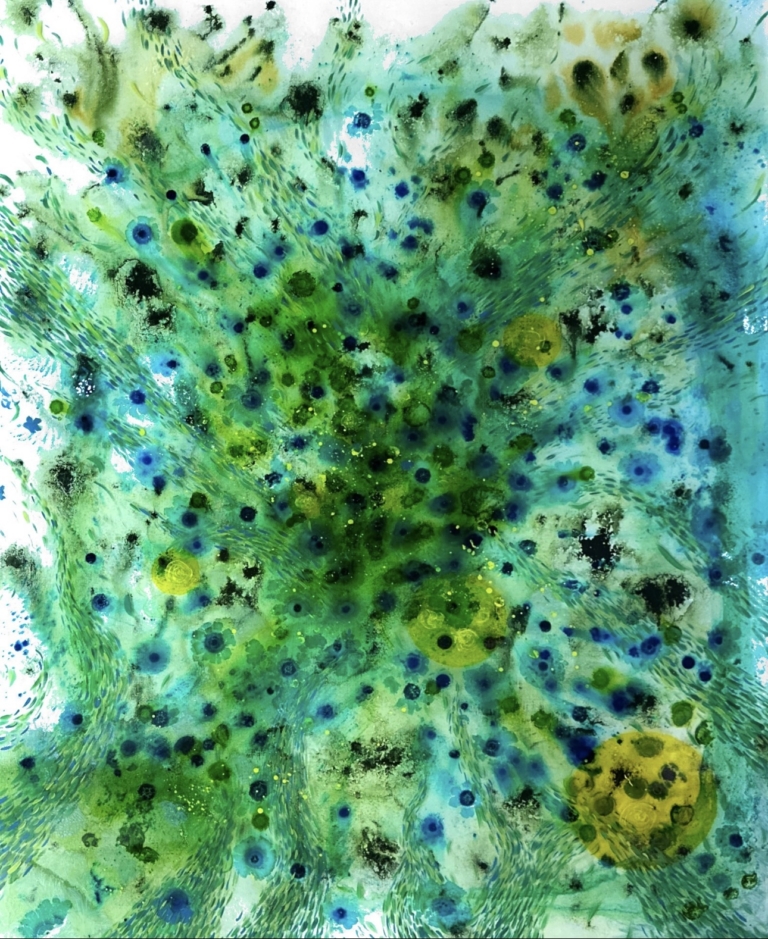 2024 複合媒材 116.5 x 91 cm 創作理念 距今約35億至41億年前,海洋誕生了地球最早的生命體-藍綠菌(cyanob…